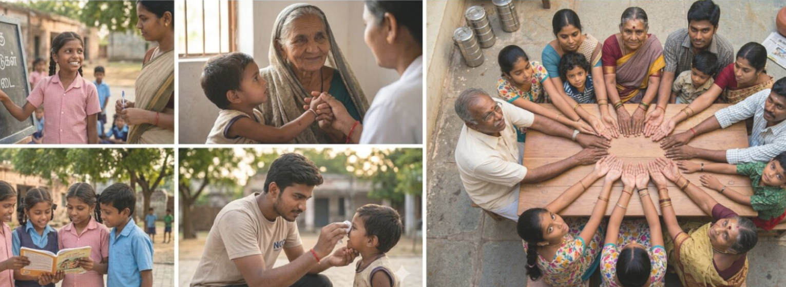 Since 2008, we have been committed to promoting education, healthcare, skill development, rural upliftment, women empowerment, and environmental sustainability across Tamil Nadu and beyond.